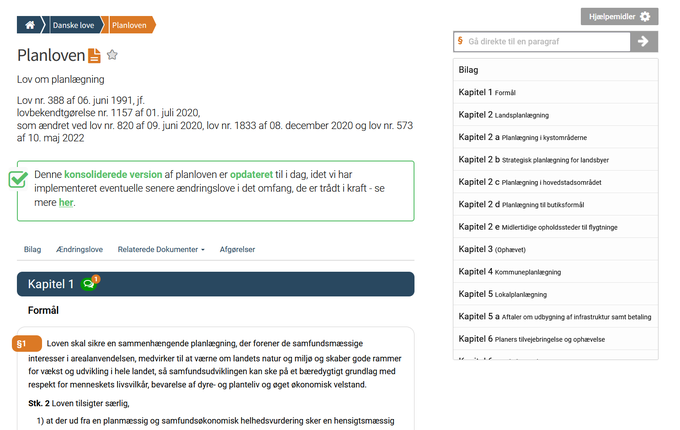 Love og bekendtgørelser er forsynet med indholdsfortegnelse, så du hurtigt får overblik og kan gå direkte til et kapitel. Der er også et paragraffelt, så du let kan hoppe direkte til en paragraf uden at scrolle.